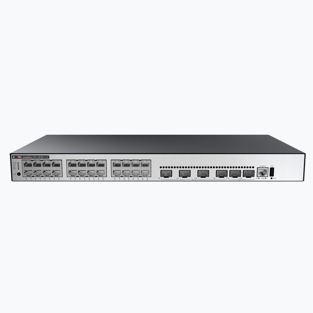 CM5535-L24P4XE-A-V2 | CM5535-L24P4XE-A-V2 交换机(24个10/100/1000BASE-T以太网端口,4个万兆SFP+,2个12GE堆叠口,PoE+,交流供电) |